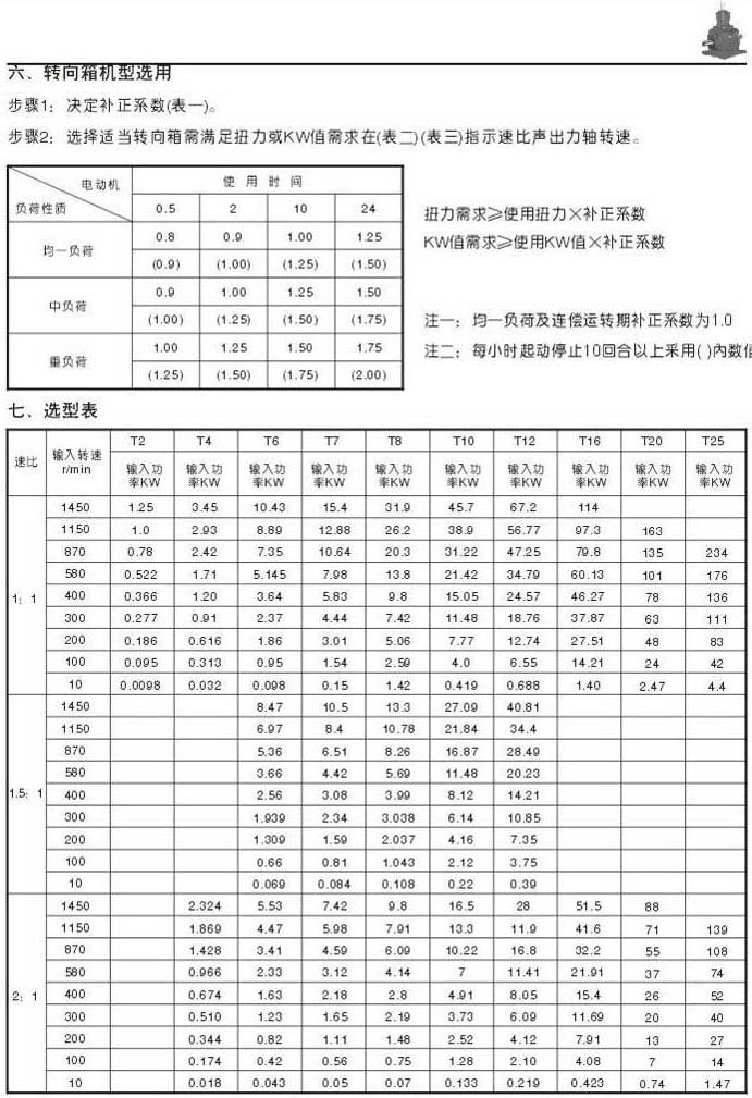 轉(zhuǎn)向箱機型選用,選型表