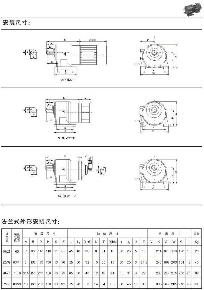 安裝尺寸三法蘭式外型安裝尺寸三