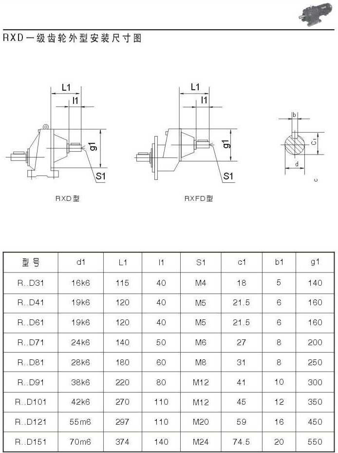 RXD一級(jí)齒輪外型安裝尺寸圖表