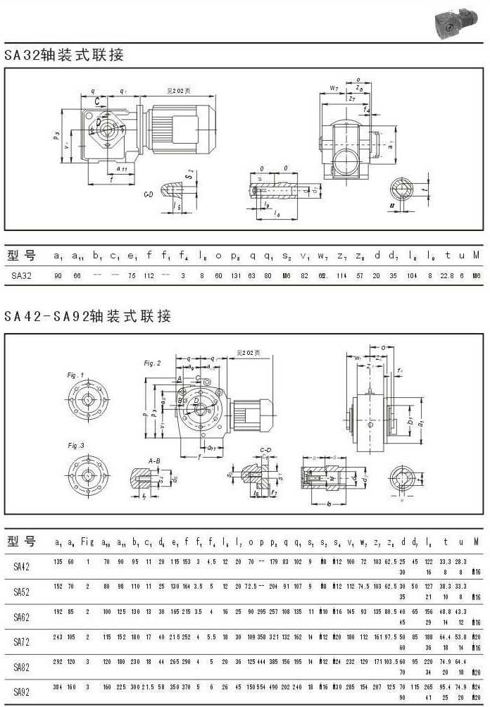 SA32軸裝形式聯結參數圖表SA42-SA92軸裝形式聯結參數圖表